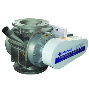 物料從上部料斗下落到星形葉片之間,然后隨葉片旋轉(zhuǎn)至旋轉(zhuǎn)閥下部,憑借重力從出料口卸出。