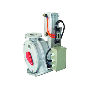 通過氣缸帶動雙通道轉(zhuǎn)子旋轉(zhuǎn),在氣力輸送管路中實(shí)現(xiàn)物料流向的轉(zhuǎn)換。