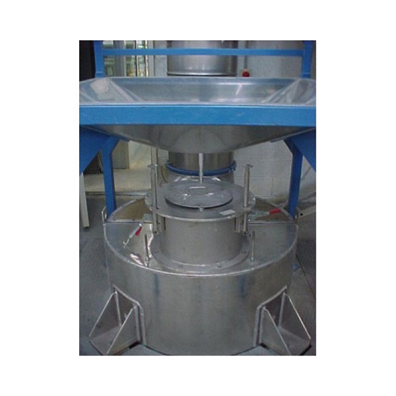 負(fù)壓除塵系統(tǒng)可保證無塵操作,包括一個負(fù)壓風(fēng)機(jī)和袋式過濾器(帶有壓縮空氣脈沖反吹系統(tǒng)用于清理布袋)。料斗的容積2200升帶有支座或支腿用于安裝料斗。